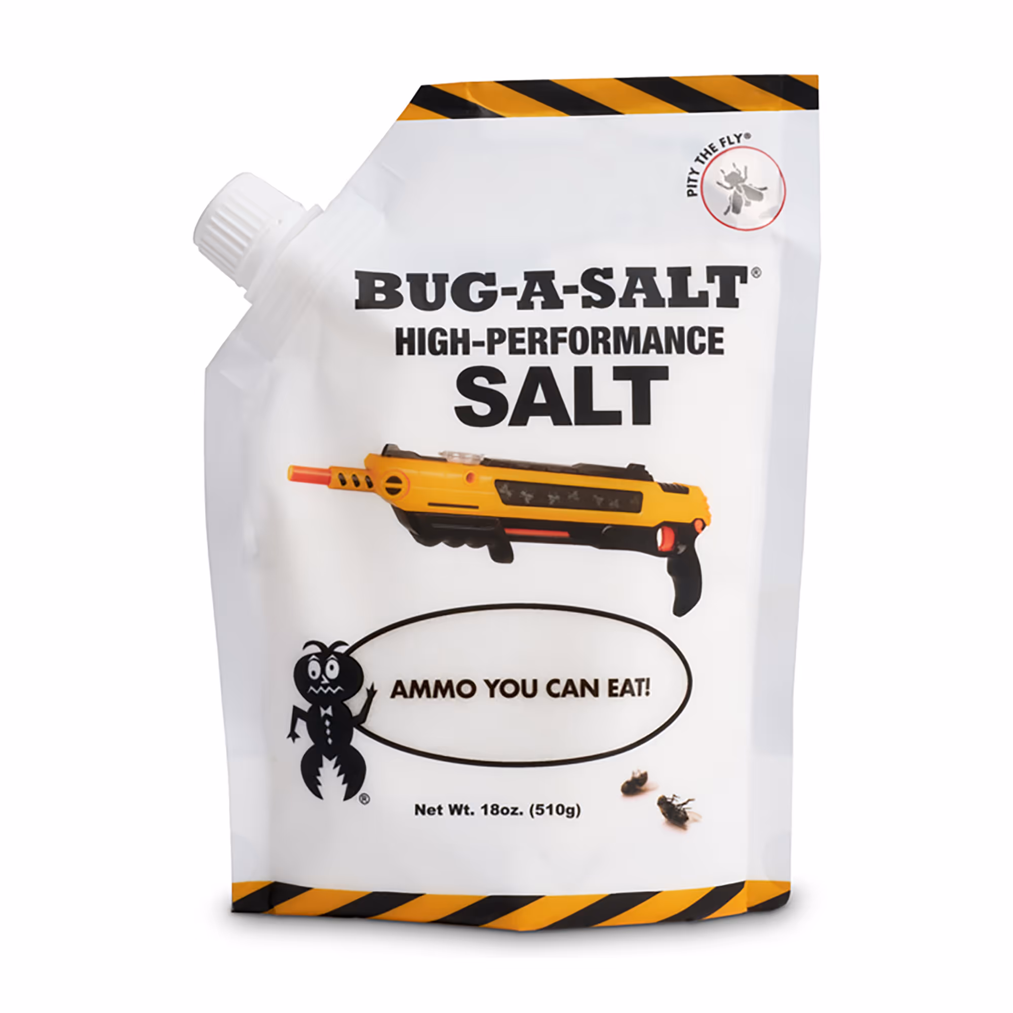 BUG-A-SALT HIGH PERFORMANCE SALT Optimized coarse salt ammo for stronger impact. 18 oz twist-top pouch, anti-caking formula, zero calories, gluten-free. Not compatible with SHRED-ER.