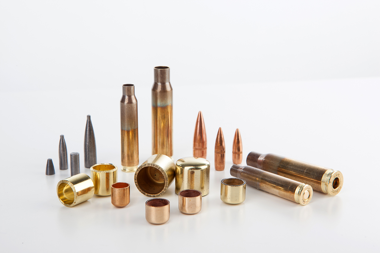 GGG manufactures its own metal components to maintain full control over quality and production: bullet cups, case cups, cartridge cases, bullets, lead cores, and steel cores across common military and civilian calibres. Components include cups and cases for 5.56×45, 7.62×51, 7.62×39, .223 REM, .308 WIN and 9 mm PARA, plus a range of FMJ bullet weights and cores. GGG also offers linking, clipping, and packaging services to deliver finished, customer-ready ammunition.