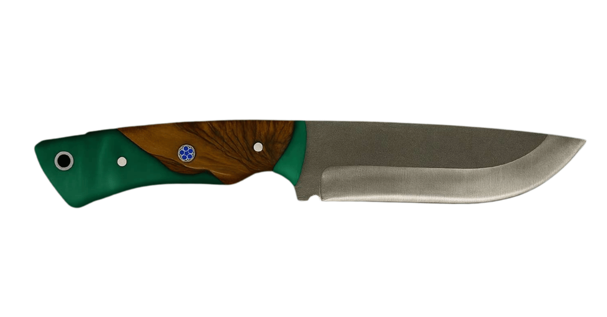 Durable W-Nr 1.4034 steel blade paired with olive wood and epoxy, a perfect harmony of art and toughness.